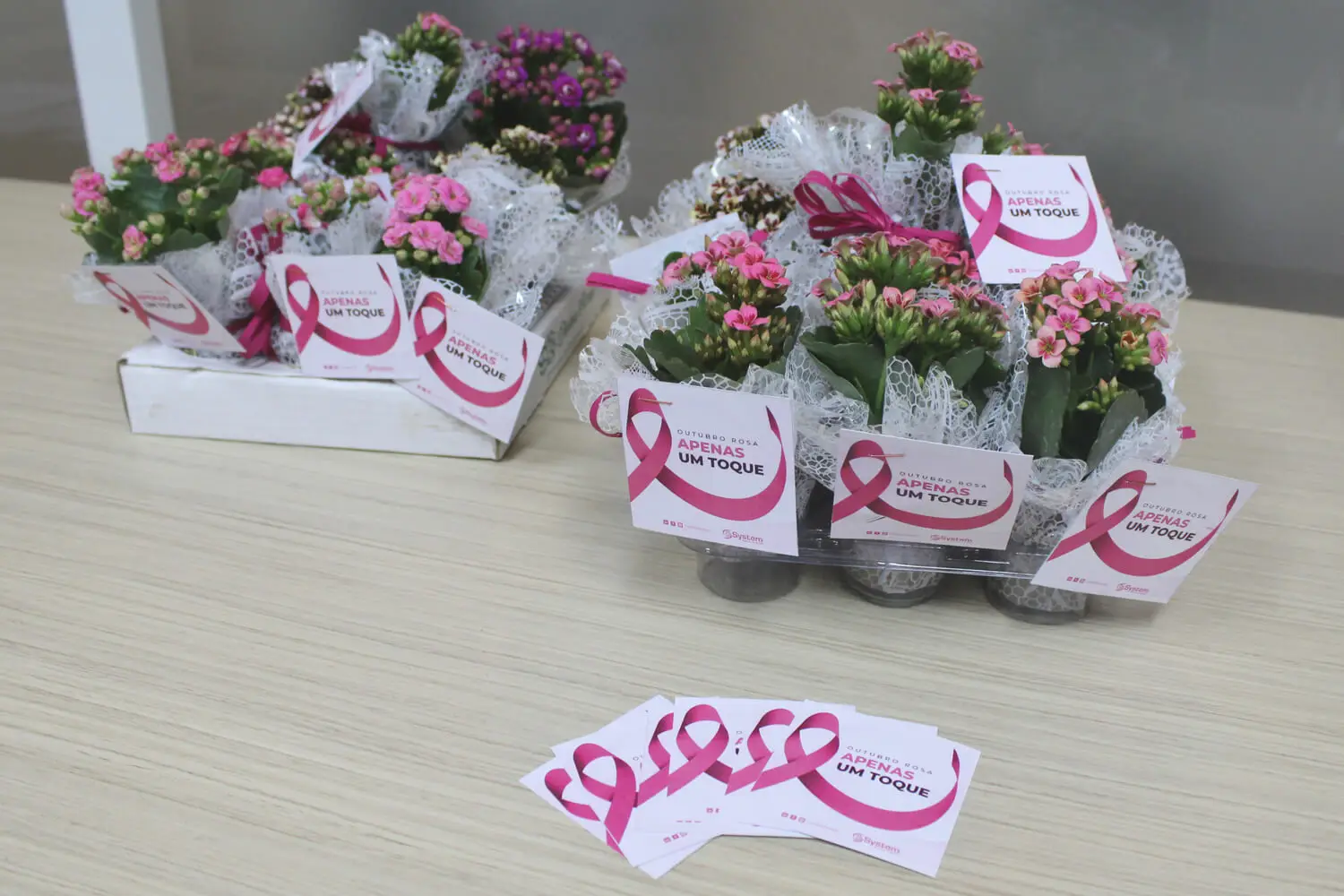 Tendo isso em mente, a System Sistemas de Gestão realizou nesta sexta-feira, 8, uma ação junto às suas colaboradoras. Foram entregues pequenos vasos de flores, simbolizando a importância do autocuidado feminino, sobretudo quando o assunto é câncer de mama.