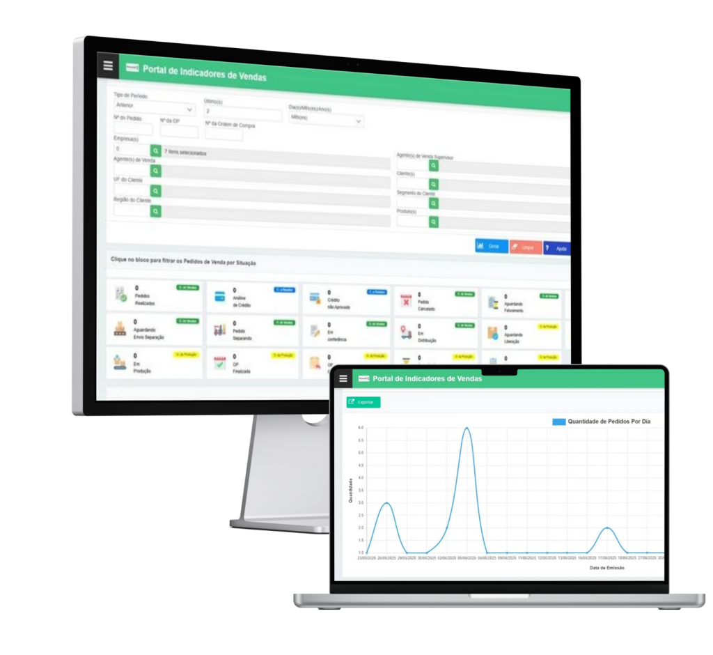 O Portal de Indicadores da System é uma solução de inteligência comercial que centraliza dados de vendas e apresenta informações em tempo real por meio de dashboards interativos. Permite acompanhar o desempenho da equipe, produtos, clientes e regiões com clareza e agilidade.