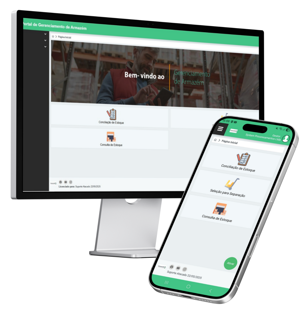 A solução automatiza armazenagem, separação, conferência e expedição, com controle de estoque, endereçamento inteligente, validações por FIFO, FEFO e LIFO, gestão de tarefas logísticas e operação em ambiente web e mobile.