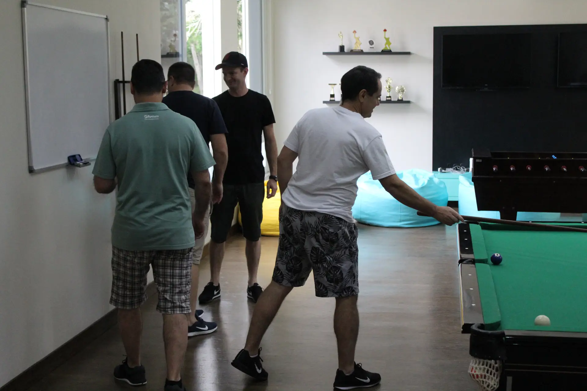 O Torneio que ocorreu na sede da empresa nos períodos da manhã e tarde contou com a disputa entre as chaves nas modalidades de sinuca, pingue-pongue, truco e três sete, além de almoço, promovendo integração entre os colaboradores.