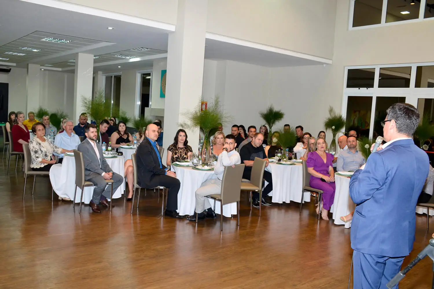 A noite especial foi aberta com pronunciamentos de alguns dos gestores da organização. O primeiro a fazer uso da palavra foi Giovani Dall Agnol. “Tenho orgulho em fazer parte dessa empresa e essa data significa mais uma vitória da System, empresa que nos traz benefícios financeiros, mas principalmente benefícios pessoais, por meio do convívio com colegas que se tornam amigos e com quem trocamos experiências e compartilhamos desafios e conquistas”, declarou o gerente de desenvolvimento de sistemas.