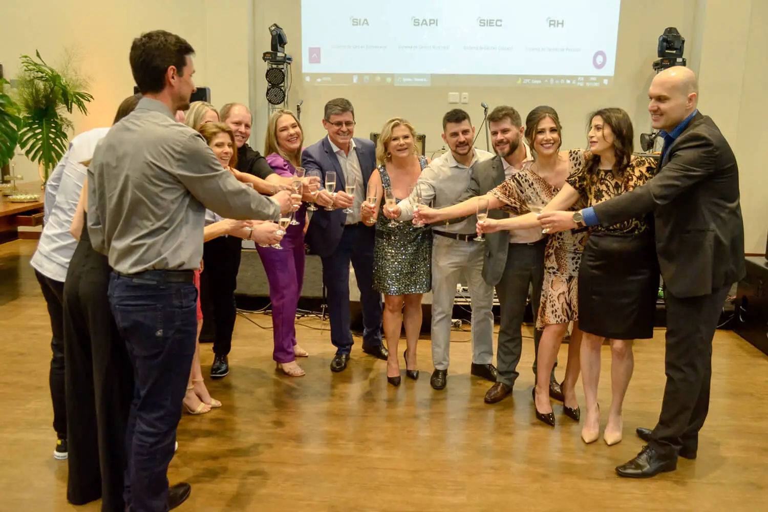 A System Sistemas de Gestão realizou, no sábado, 13 de novembro, uma comemoração especial alusiva ao seu aniversário de 35 anos, ocorrido no domingo, 14. O evento, que reuniu colaboradores e demais convidados, teve início às 19h, no Salão de Festas da sede da empresa, especialmente decorado para a ocasião. Ainda na véspera da festa, foi solicitado a todos os participantes envio do Certificado Nacional de Vacinação Covid-19, emitido pelo Ministério da Saúde.