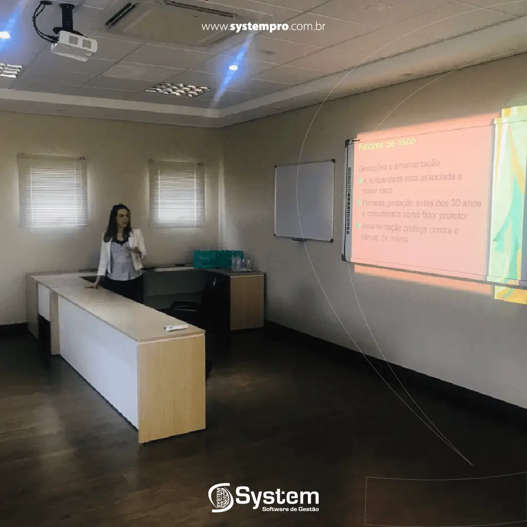Na manhã desta terça-feira (15/10/2019), a System em parceria com a Unimed promoveu palestra para suas colaboradoras e familiares alertando a importância da prevenção e diagnóstico do câncer de mama.