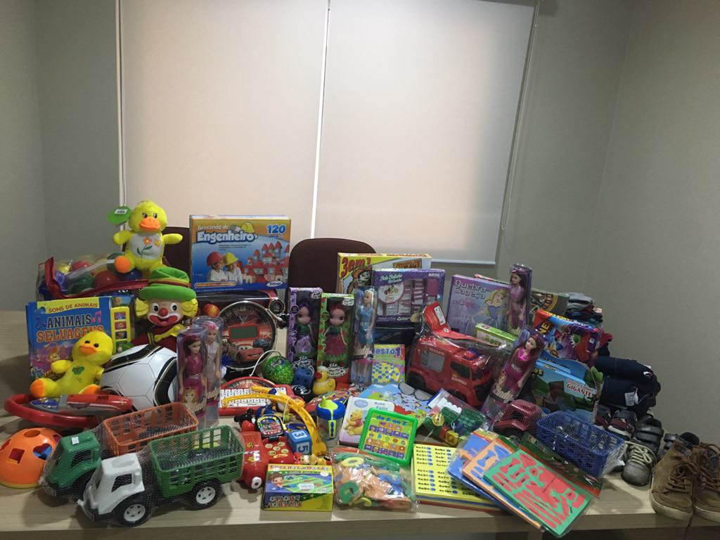 Dentre as doações, brinquedos e calçados, os quais foram repassados diretamente para Dona Alzira, responsável legal pelo Cantinho.